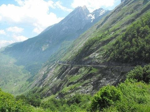 Rises nicely on a good, wide surface with nice corners and stunning views. After Gourette the road continues rising but the surface deteriorates so it's not as nice to ride.