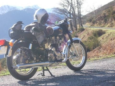 I will forgive you for being confused - I was! First the decision about the road type - Mountainous, Rural or Trail. Um - Yes. No sorry - not good enough pick one. Ok then trail (just in case some one decides to take their 'Blade up there. But not strictly true - see below. Length of route - um - as the crow flies - 20KM - for the odometer - 40-50? So far - so good. Now lets get really confused... This road is exceptional! First the good news - Visibility - no idea what's coming up (or down). Road surface - very bad lots of potholes, gravel, banding etc, Hasards - you need to be alert continuosly. Now the better news - you never see a copper - why - you can't possibly go over 70 (Km). No straights, all corners - scenery - outstanding! Road/trail driven on a Royal Enfield Deluxe, for the photos, up to the start of the forest trail section. Despite being hot and sunny, it was february so icy roads in the shadows stopped play (gone by mid-march) - had the author been on one of the firm's GS's or trail bikes the fun would have continued as it has done on several previous occaisions. The 'road' can be accessed either from the D618 running near Col D'Aspet (starts with forestery track) or from the N125 just 100 m from the passport control to the spanish border. Follow the signs to Melles. OK 'Blade man' - you can take your bike up to Melles - maybe a little higher - the Auberge there is well worth lunching at. Beware - the tarmac section to the top of the mountain is very tortuous - all 20 -30 Km corners and 180 degree turns - which is why I took the Enfield - as the bike is just a pleasure to ride there square tires an all! On the right kit - the forest tracks can be taken at anything up to 90Km/h - but with caution. Big loop possible tying up D925, this route and D618. Any questions - find me at Mission Motos. Happy rides.
